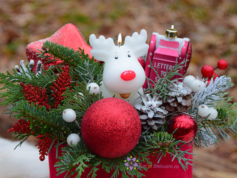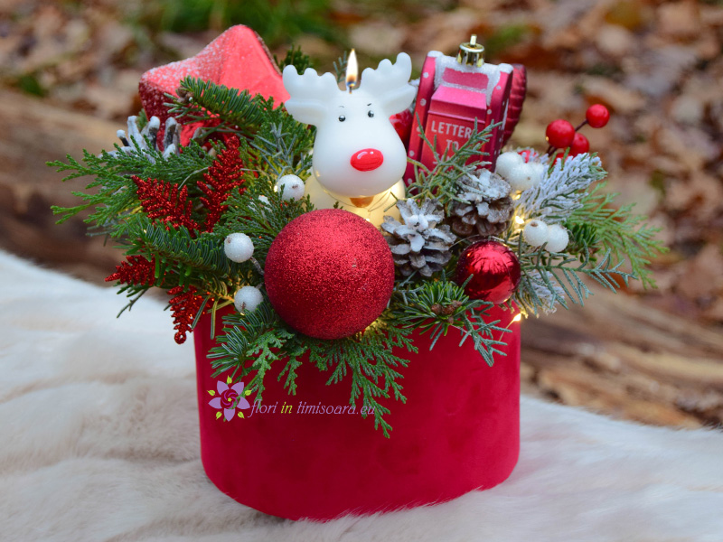Comandă acest aranjament de Crăciun cu ren de la singura Florărie Non Stop din Timișoara, floriintimisoara.eu și trimite cea mai veselă urare celor dragi.